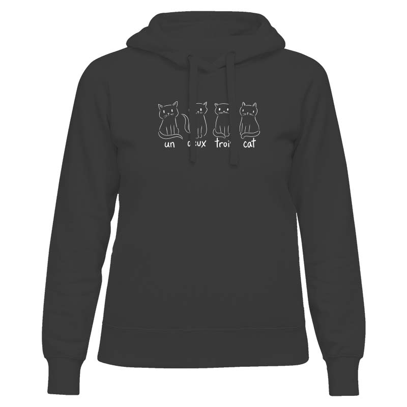 γυναικείο μαύρο φούτερ με κουκούλα με στάμπα 4 cats