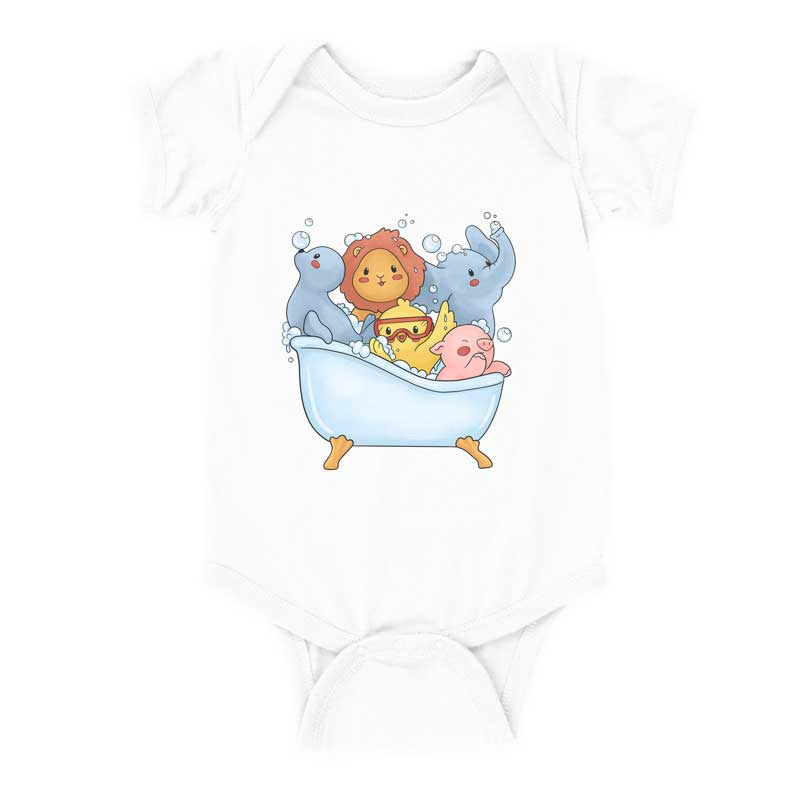 • λευκό παιδικό φορμάκι με στάμπα animals in bathtab