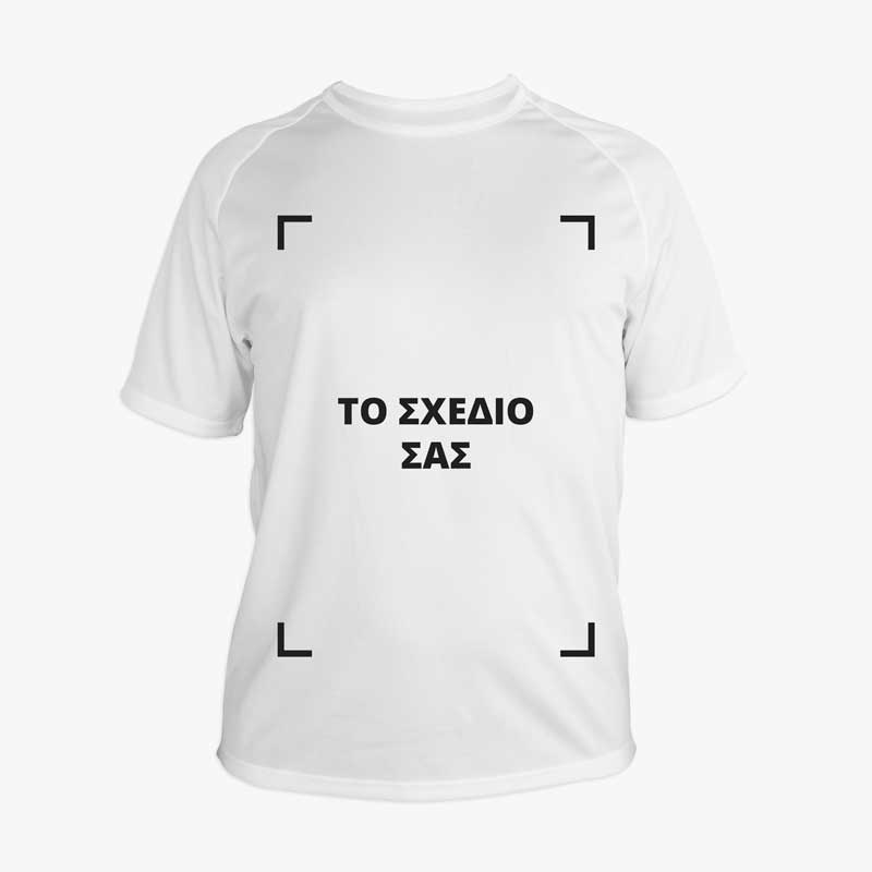 Φτιάξτε το δικό σας διαπνέον t-shirt με την δική σας custom στάμπα. Mπορείτε να ανεβάστε ένα έτοιμο σχέδιο ή επιλέξετε ένα από τα έτοιμα της βιβλιοθήκης μας ή γράψτε το κείμενο της επιλογής σας.