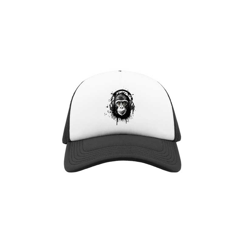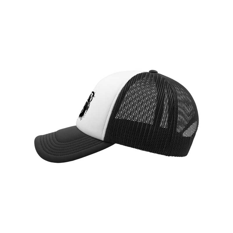Καπέλο με μαλακό μπροστινό λευκό πάνελ και εκτύπωση και μαύρο δίχτυ στο πίσω μέρος και στο πλάι.